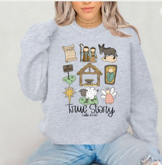 🎄 — Luke 2:1-20 comes to life in this cozy sweatshirt featuring a cute nativity design that reminds us Jesus is the reason for the season. ✨