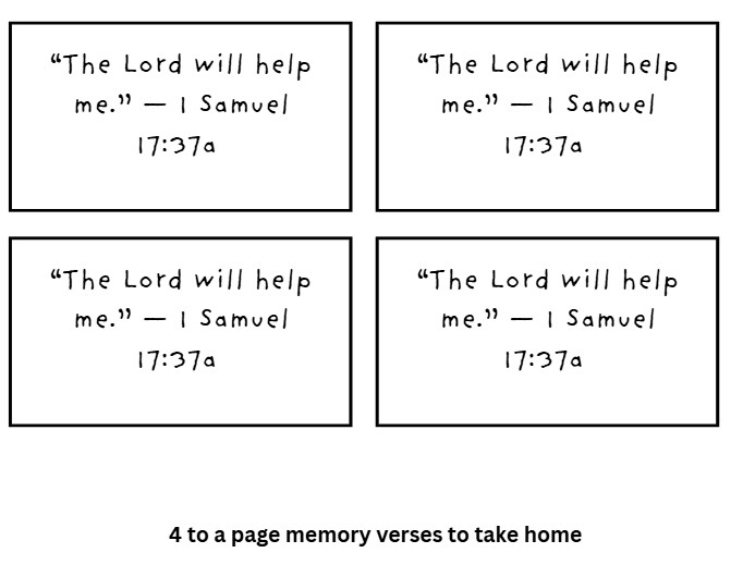 • 💡 Memory Verse Options: 1 Samuel 17:37 and 1 Samuel 17:47 — both reminding children that “the battle is the Lord’s!”