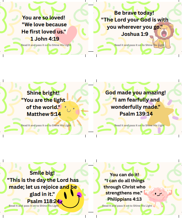 Each note has a short Bible verse + a sweet reminder that will brighten their day and remind them of God’s love. 💖