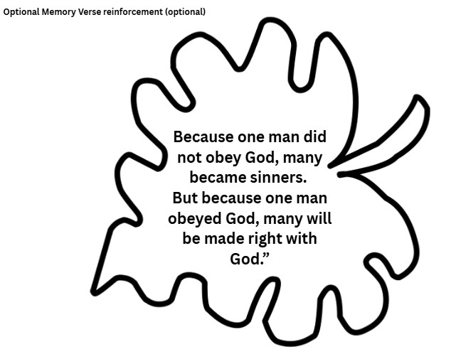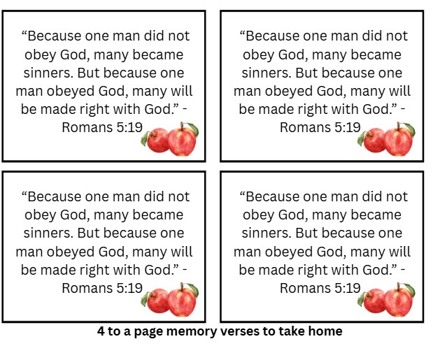 💡 Memory Verse: Romans 5:19 – “Because one man did not obey God, many became sinners…”