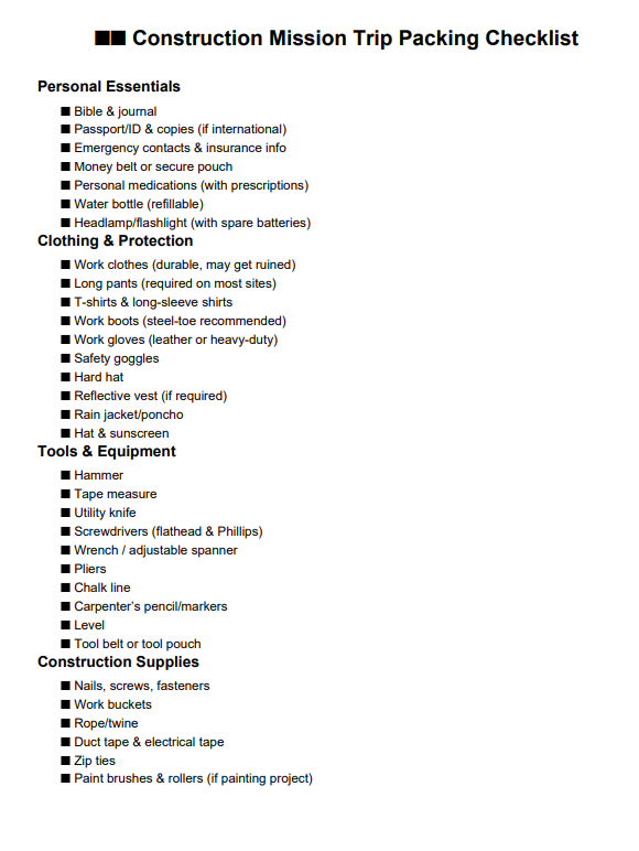 Construction_Mission_Trip_Packing_Checklist