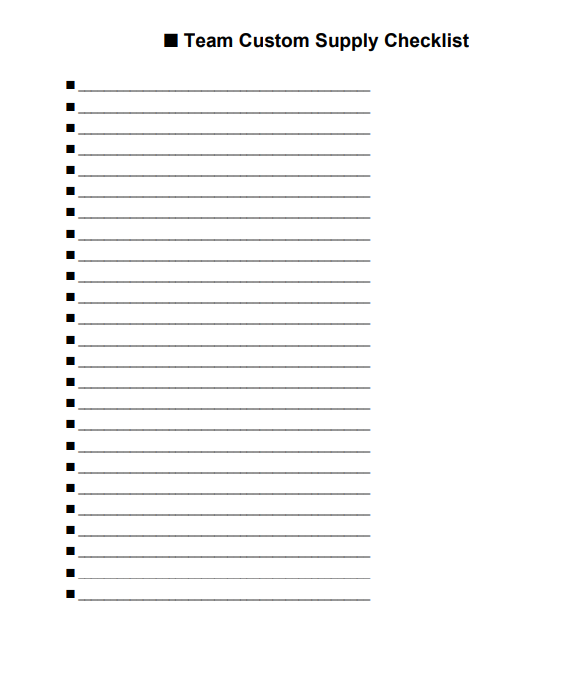 3. Team Custom Supply Checklist (blank lines)