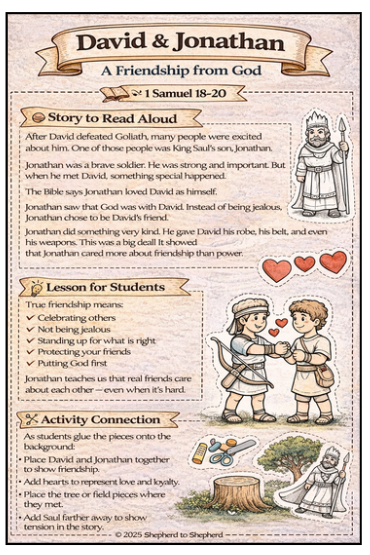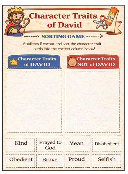 Designed for elementary students, this printable resource helps children understand character, faith, courage, and friendship through hands-on learning and meaningful discussion.