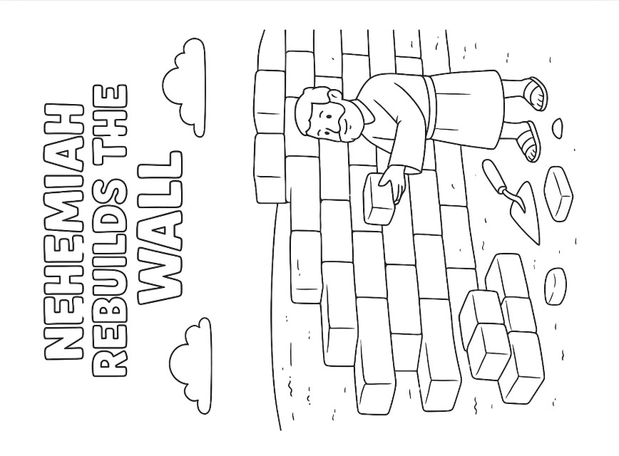 🖍️ Black & White Coloring Sheet: Realistic, kid-friendly artwork of Nehemiah and his helpers rebuilding the wall—great for coloring or quiet reflection time.