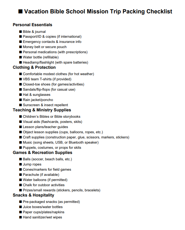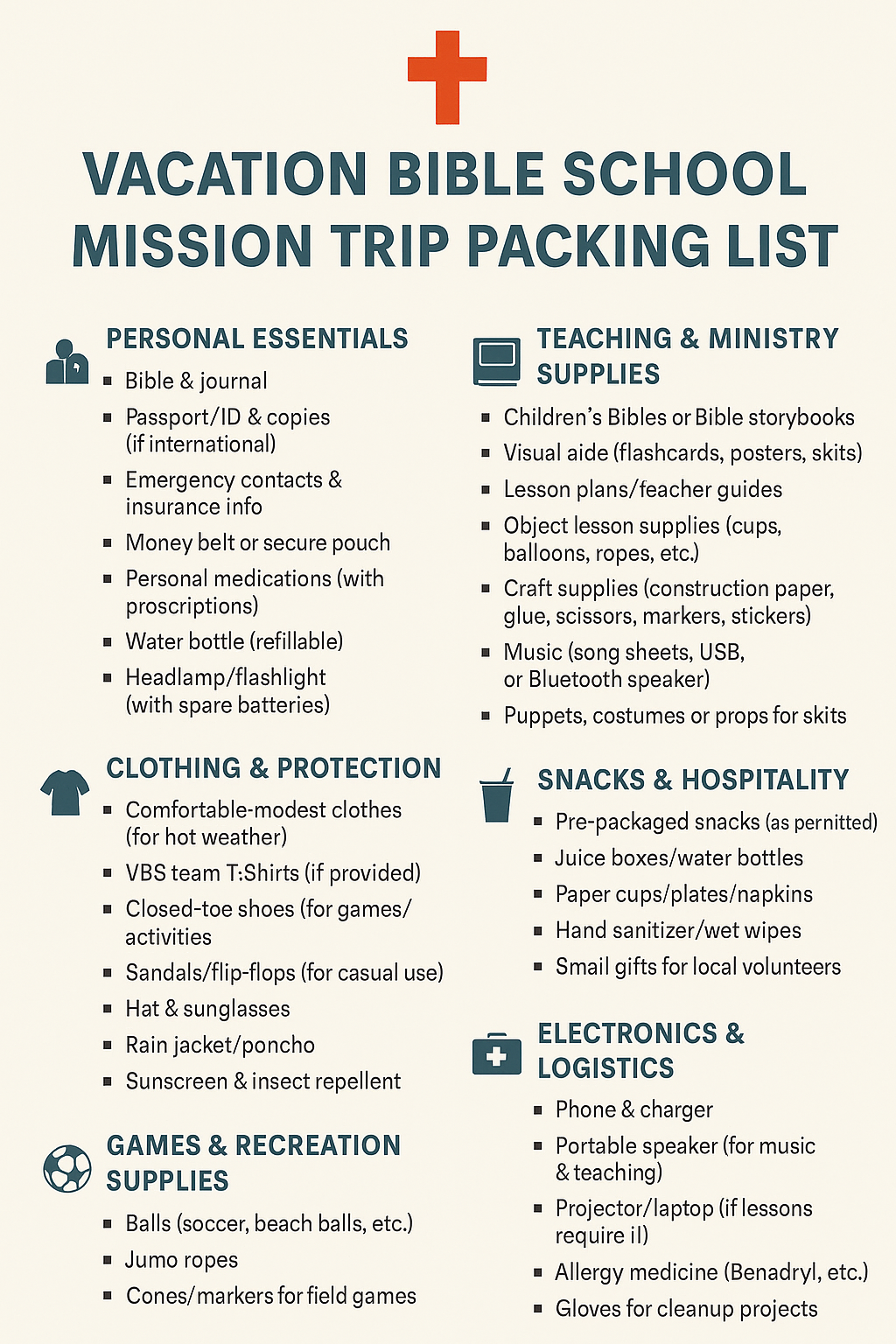 Vacation Bible School Mission Packing ListVacation Bible School Mission Packing List